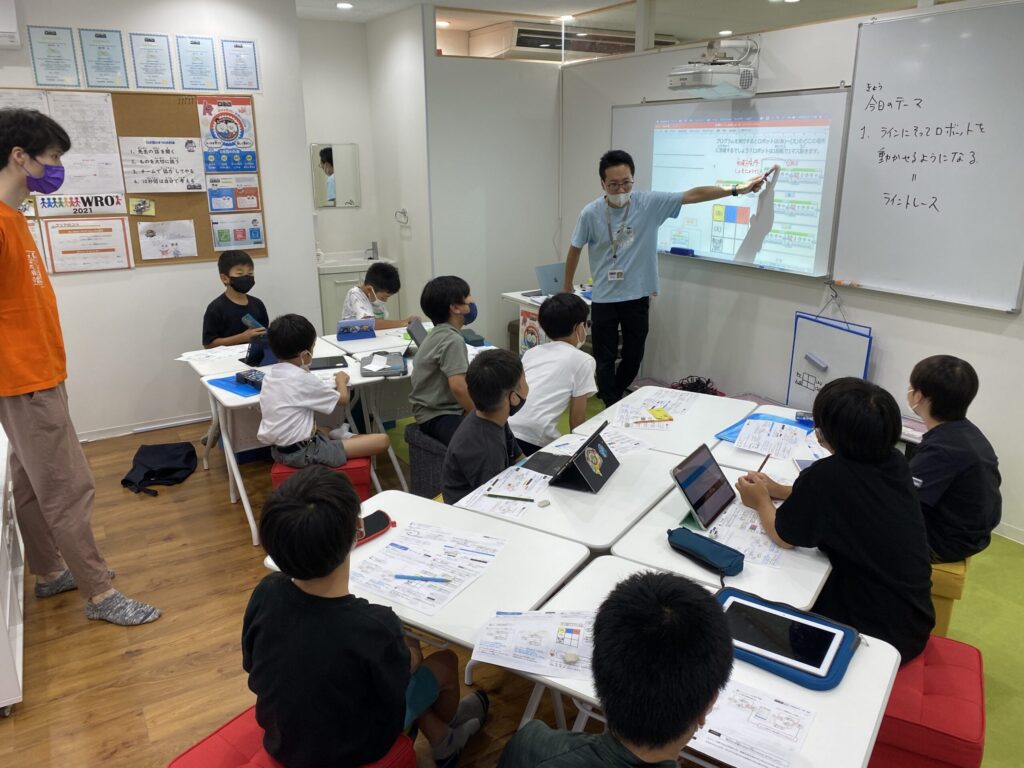 授業では基本的にペアになってロボットを作り、ペアでプログラミングをしていきます。