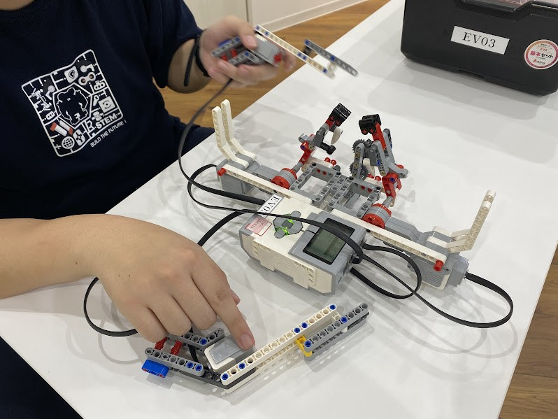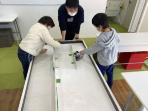 「決闘ロボット」を作成し、「ランダムブロック」の復習をしました。また、「P制御のライントレース」の復習も行いました。