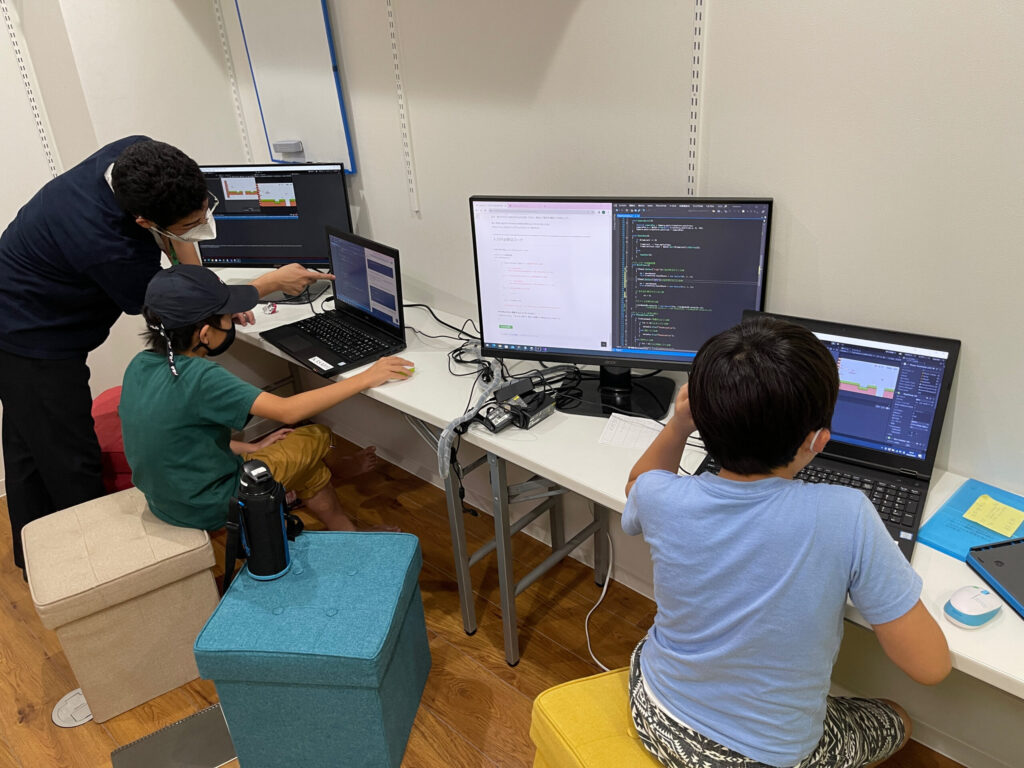 | 進め方 | 「ペアワーク」中心 ペアで制作・プログラミングを進めていくことが中心。必要に応じてソロワークを入れ、技術力を向上させる | 「ソロワーク」中心 一人ひとりが進めたい学びを進めていくことが中心。PCに触れられる時間も多く、演習量が多い。 |