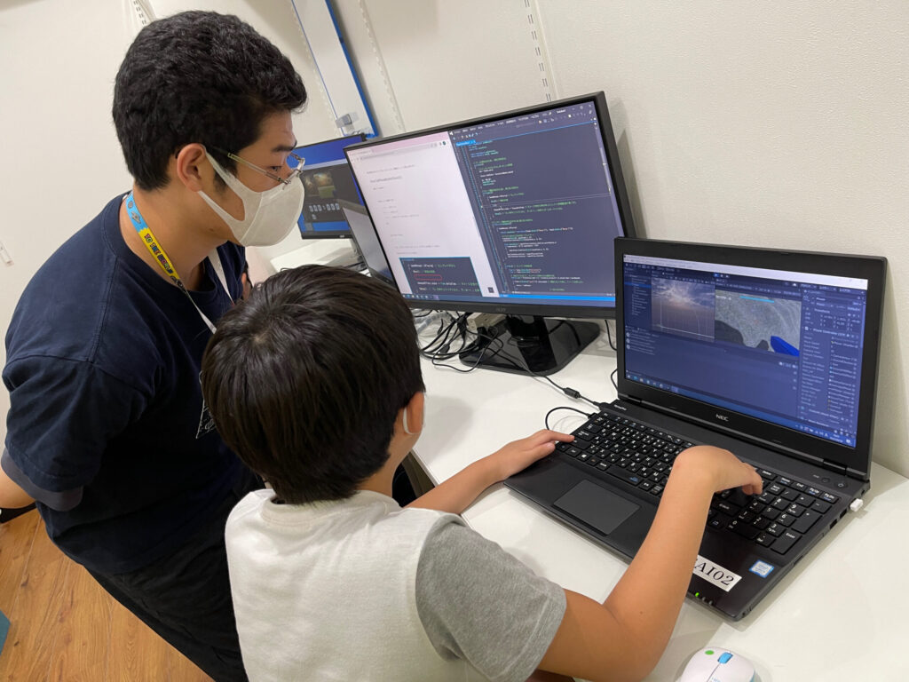 プログラミングの方法をご説明します。その間に保護者様にはゲームプログラミングコースの詳細をご説明致します。