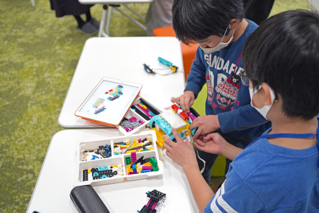 ペアと協力しながらロボットを組み立てていきます。その間に保護者様にはロボットプログラミングコースの詳細をご説明致します。