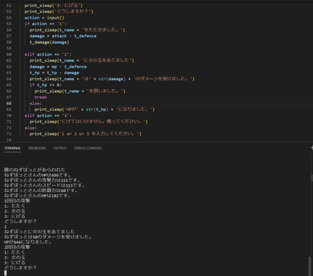最終日はコマンドRPGゲームを作成しました。