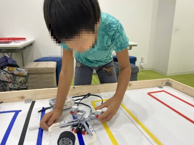 指定の位置まで走らせるには、どの数字にすればちょうどよいか数字を探すレッスンでした。